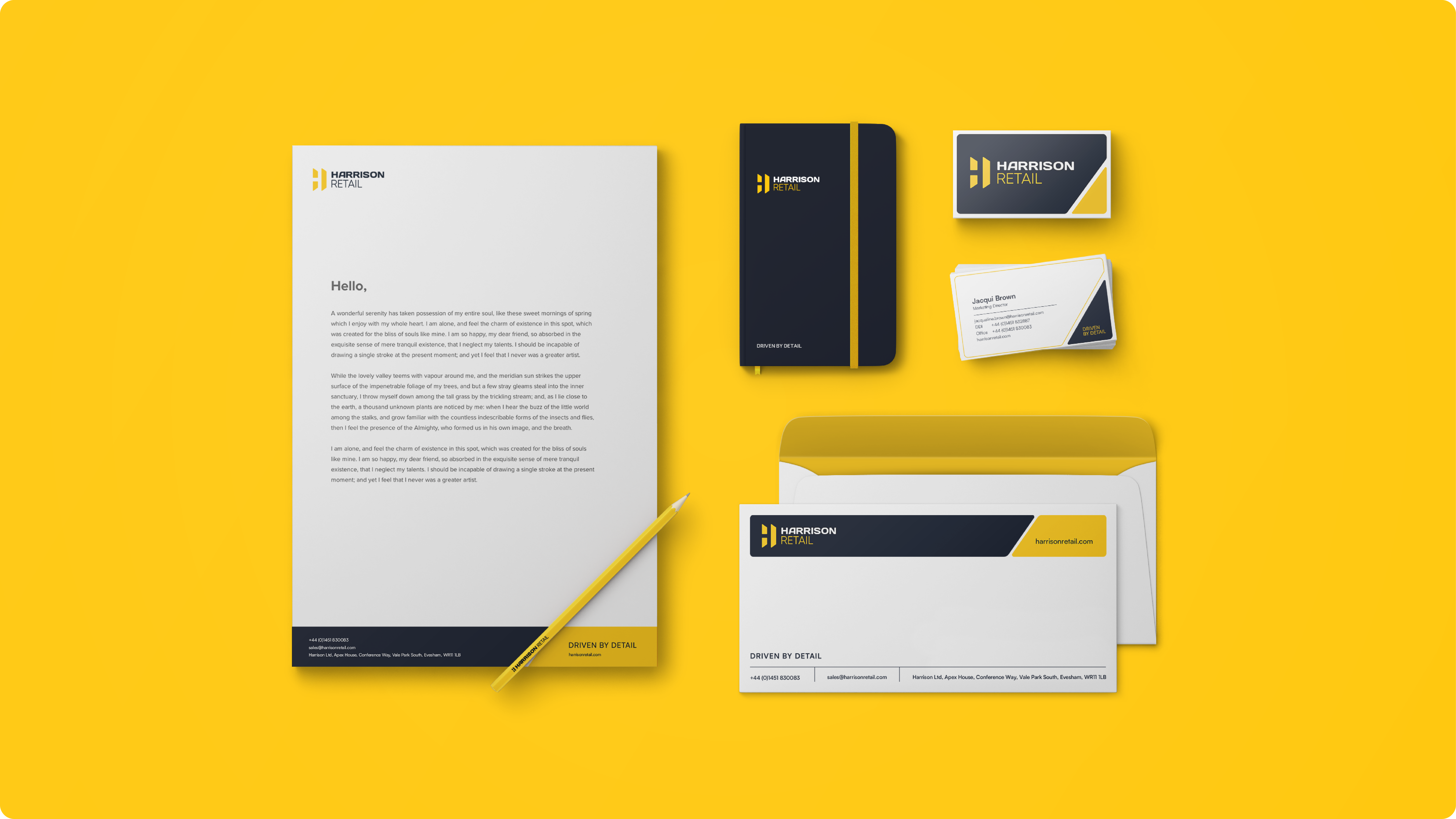 We partnered with Harrison Retail to redefine their brand identity, creating a vibrant look and feel and refreshing their website using our UX and UI expertise. We developed new tone of voice, brand vision, and guidelines to ensure consistency across their communications. Additionally, we updated their collateral — crafting sales presentations, social media toolkits, and print materials to align with the new brand identity.