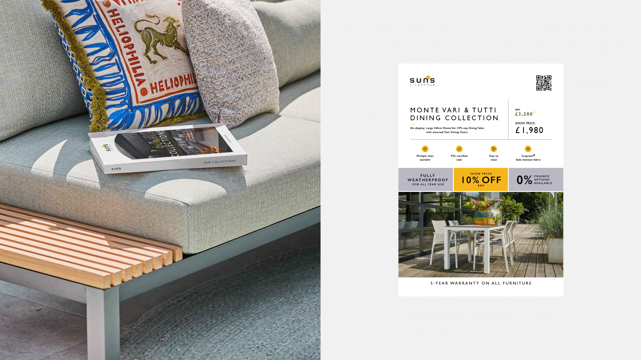 As Suns Lifestyle’s brand guardians, we have been working closely with the client and their wider marketing team to continuously evolve the brand as the business grows from strength to strength. From brochure design to paid social media ads, through trade show stands and aftercare product boxes, we’ve got it covered. We’ve worked to utilise their existing brand identity to explore how it can be evolved, to make the brand more premium to match its growing presence as market leaders.